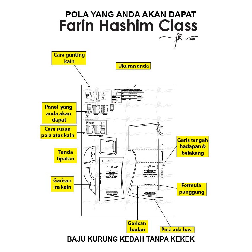 Paling inspiratif ukuran pola baju kurung kedah moden.
